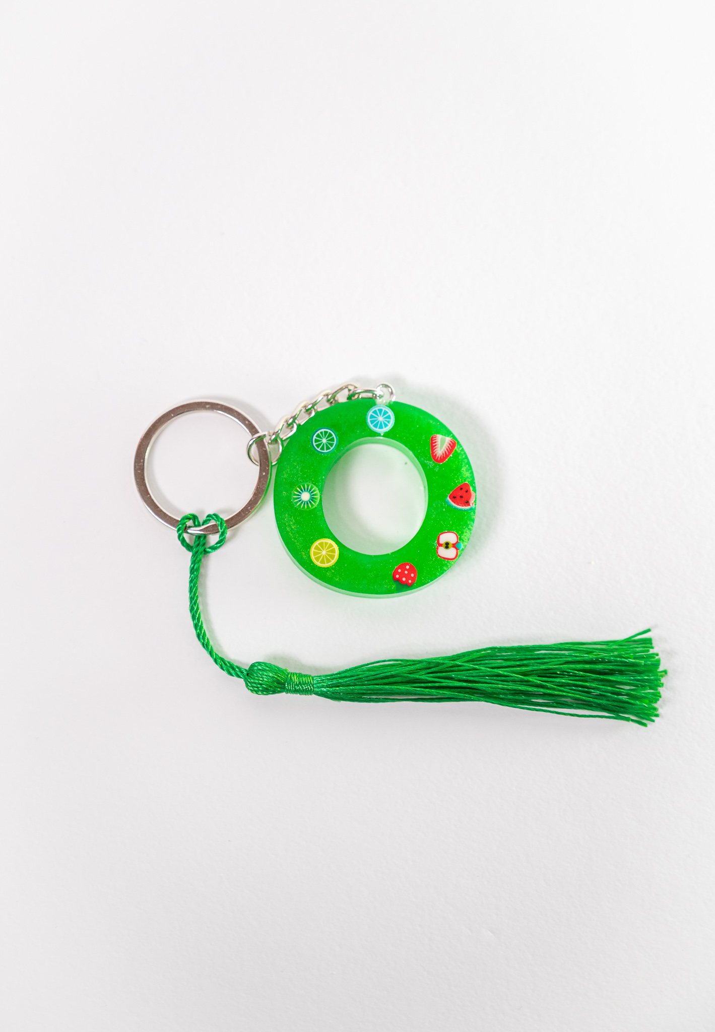Ένα παιχνιδιάρικο και φρέσκο χειροποίητο μπρελόκ από ρητίνη, γεμάτο χρώμα και καλοκαιρινή διάθεση! Κάθε μπρελόκ περιλαμβάνει μικροσκοπικά φρούτα ρητίνης (όπως φέτες λεμονιού, φράουλες, kiwi ή καρπούζι) ενσωματωμένα μέσα σε διάφανη ή χρωματιστή βάση.